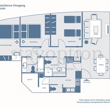 Village Residence Hougang is located in the suburban Hougang neighborhood, known for its peaceful and family-friendly atmosphere. Its convenient location offers easy access to amenities and public transportation. The property is an ideal choice for those seeking a comfortable and affordable living experience in a suburban setting.